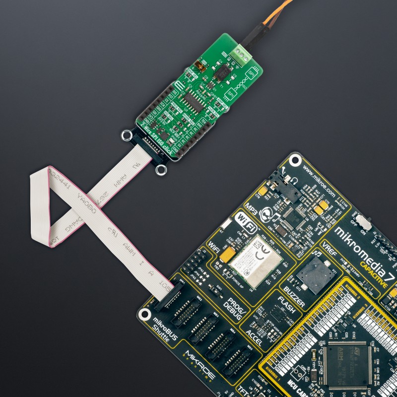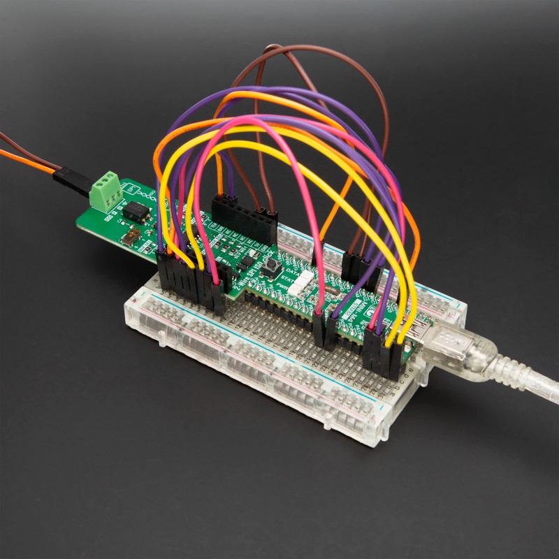 NOTE: Please be advised that any peripheral devices or accessories shown connected to the Click board™ are not included in the package. Check their availability in our shop or in the YMAN section below.
