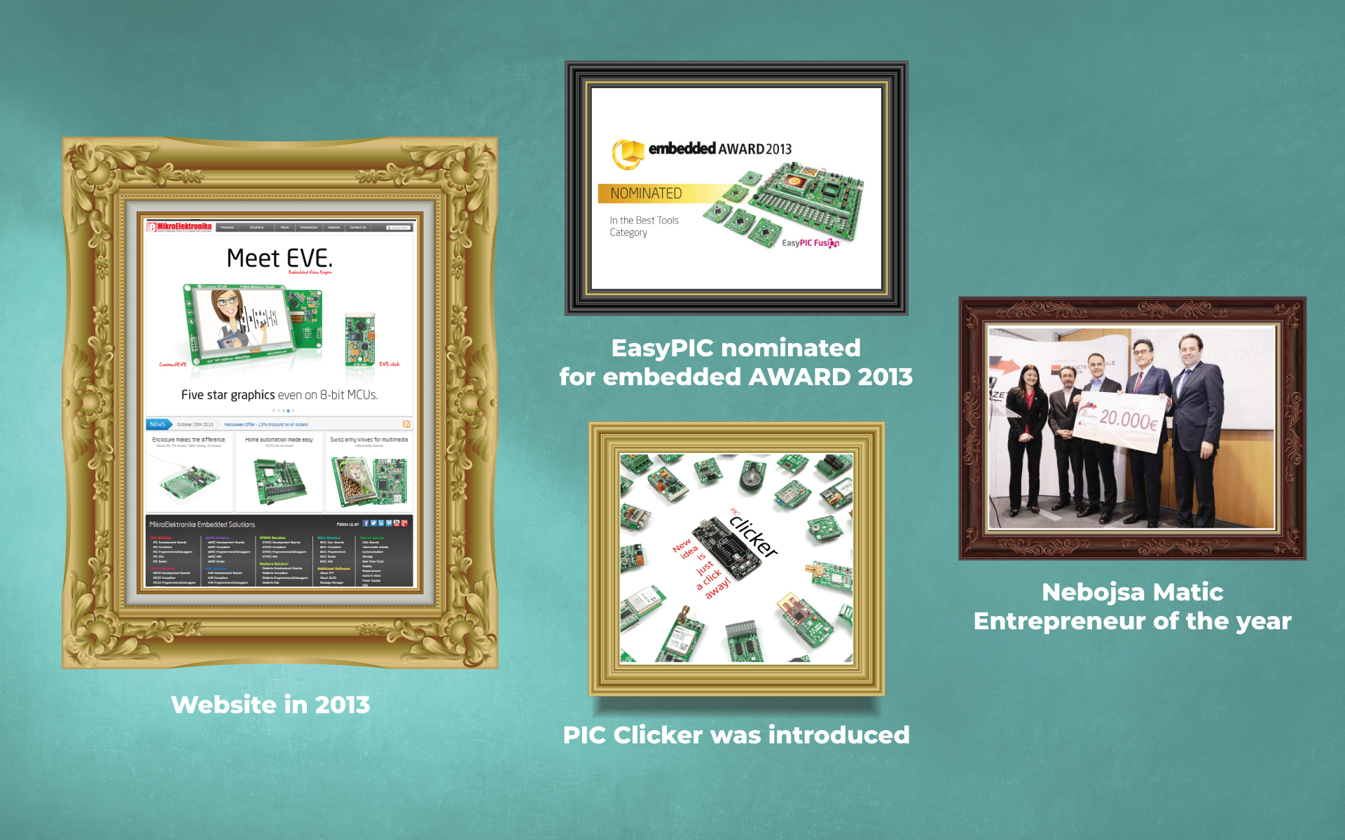 The year was marked with frequent visits to the construction site where the new building was slowly taking shape. In between those visits, we earned some nominations and awards. At Embedded World in Nuremberg, EasyPIC Fusion was nominated for Best Tool. CEO Nebojsa Matic was proclaimed entrepreneur of the year by Blic, a prominent daily newspaper in Serbia. All the while, the company was growing, barely contained by the office space it was in. RS Components and Farnell became our global distributors, joining Mouser.