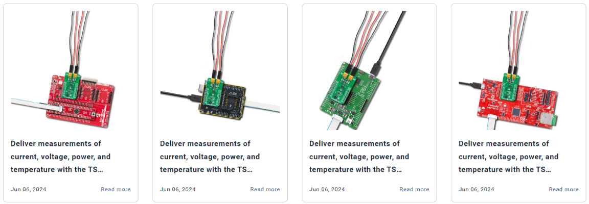 Click boards™ follow a modular prototyping add-on board standard invented by MIKROE, which revolutionizes the way users add new functionalities to development boards. Click boards™ enable design engineers to change peripherals easily, cutting months off development time. To enable hundreds of Click boards to be connected to the microcontroller or microprocessor, we have invented socket standard - mikroBUS™. This uniform connection interface allows you to connect any Click boards to a main board instantly. The company releases a new Click boards nearly every day at 10am, and many leading microcontroller companies including Microchip, NXP, Infineon, Dialog, STM, Analog Devices, Renesas and Toshiba now include the mikroBUS™ socket on their development boards.