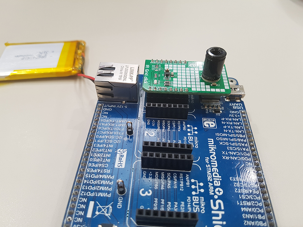 - Connect IR Grid Click to mikroBUS1 on Shield