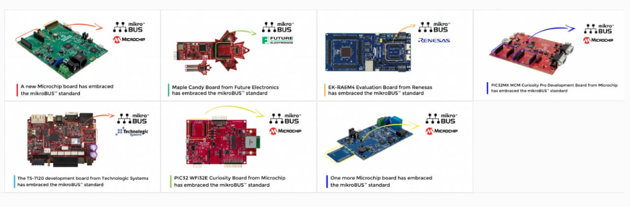 We are proud that a lot of companies see the mikroBUS™ standard value, and are adding mikroBUS™ socket into their design to simplify development and maximize efficiency.