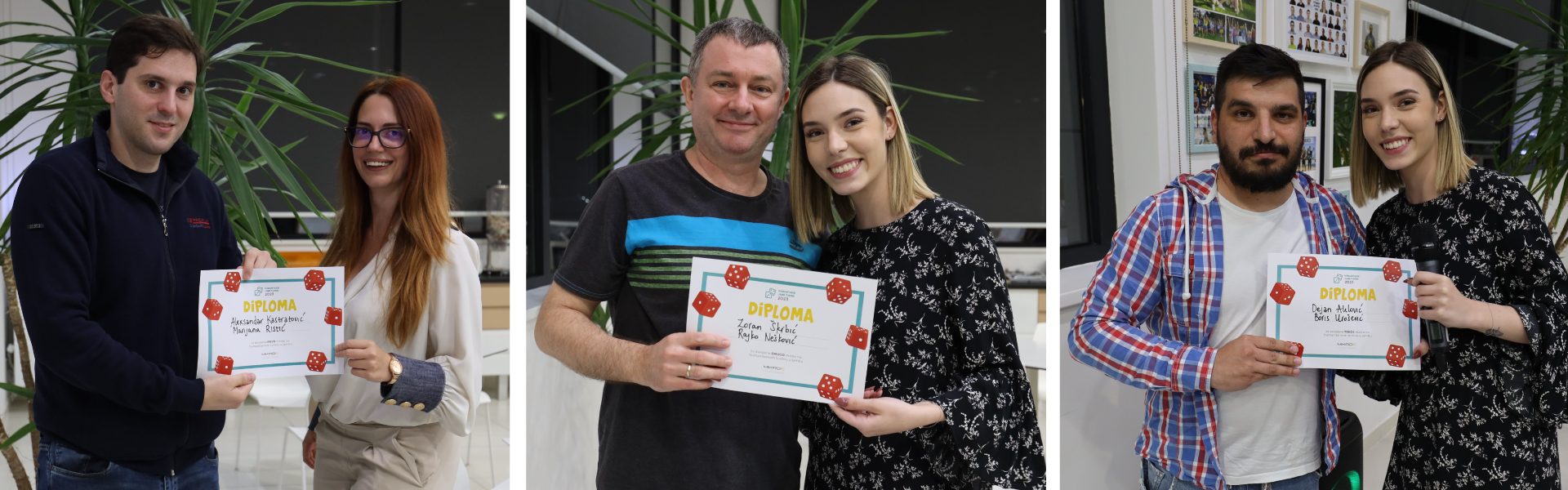 Following the delightful sweets, we gathered around for a yamb tournament, which proved to be a journey down memory lane. Yamb, a traditional dice game, was a favorite pastime for many of our older colleagues. As they rolled the dice and exchanged banter, cherished memories resurfaced, creating an atmosphere filled with nostalgia. At the same time, some of our team members experienced the joy of playing yamb for the first time, creating new bonds and shared experiences. Top three participants in the yamb tournament were awarded special diplomas to commemorate their achievement. And the winners had a special opportunity write a check on behalf of MIKROE to support the medical treatment of the young boy.