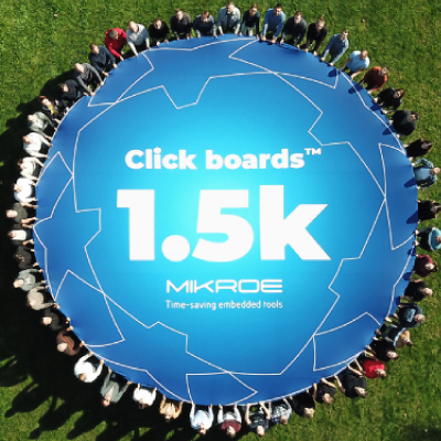Last year we've celebrated the release of 1500th Click board™. We celebrated as if we were opening a world championship. A massive 1.5k circle banner was unveiled, symbolizing the vast and diverse range of Click boards™ we offer.