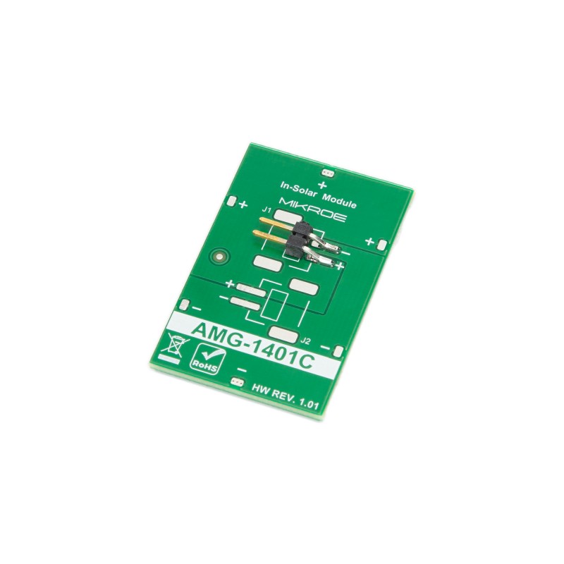 Product package also includes two 15cm female-to-female wire jumpers, one black and one red, providing immediate plug-and-play connectivity options for testing or prototyping. At the core of the module lies the AMG-1401C, a hydrogenated amorphous silicon (a-Si:H) solar cell commonly referred to as an Amorton cell and designed for indoor low-power applications. It features a nearly perfect black-reflective surface that significantly improves efficiency, offering more than a 20% performance increase compared to typical models.