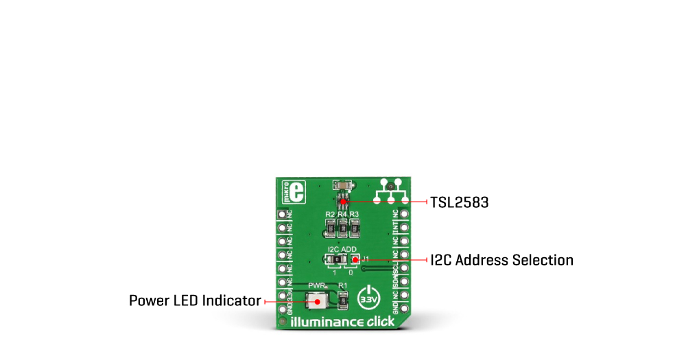 NOTE: Illuminance Click has been moved to the Legacy. As an alternative, we recommend using Ambient 21 Click. For more details on Ambient 21 Click, please visit its product page.