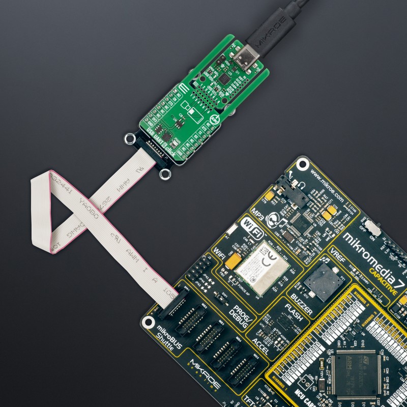 USB UART 6 Click demo application is developed using the NECTO Studio, ensuring compatibility with mikroSDK's open-source libraries and tools. Designed for plug-and-play implementation and testing, the demo is fully compatible with all development, starter, and mikromedia boards featuring a mikroBUS™ socket.